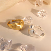 Romaine Leclerc Ring Boldly reimagining the classic heart motif, the Guerilla Choice Heart Ring is a striking statement piece designed for the modern romantic. Featuring a generously sized, heart-shaped band, this adjustable ring is crafted in high-quality gold and silver tones, each with a satin-brushed finish that adds a subtle, sophisticated texture.