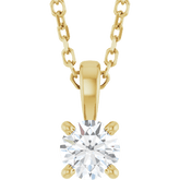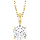 Each stone is set in a classic four-prong mount, allowing every facet to shine with unmatched brilliance. The polished cable chain adds a warm golden glow that enhances the diamond’s sparkle, making this pendant ideal for both everyday wear and unforgettable evenings.