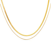 A delicate balance of strength and grace. L’Allure is the gold layering essential—designed to move with you, from morning light to midnight glow. Sleek yet striking, this 18K gold-plated PVD necklace pairs a fluid herringbone chain with a fine snake chain, creating effortless dimension with a refined edge.
