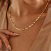 Le Collier Éternel is crafted from high-quality stainless steel, finished with a luxurious 18k gold plating for a lasting shine. Its sleek Cuban-inspired chain design drapes effortlessly along the neckline, making it the perfect everyday statement piece — whether worn solo or layered with your favorite chains.