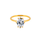 A quiet statement of brilliance. L'Éclat Solitaire is the epitome of refined minimalism—where effortless elegance meets everyday wear. Crafted from 316L stainless steel, this ring is designed to endure, maintaining its golden glow without tarnish or fading. At its heart, a radiant, oval-cut zircon takes center stage, delicately held in a six-prong setting, capturing light from every angle.