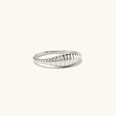 Sleek yet distinctive, L’Anneau Sculpté stands out with its ribbed silhouette that plays with light and shadow. Its refined structure adds depth and texture, making it an elegant twist on the classic gold ring.